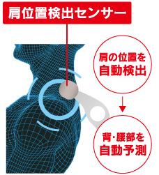 センサーが自動で肩位置を検出し、背・腰部の位置を自動予測。