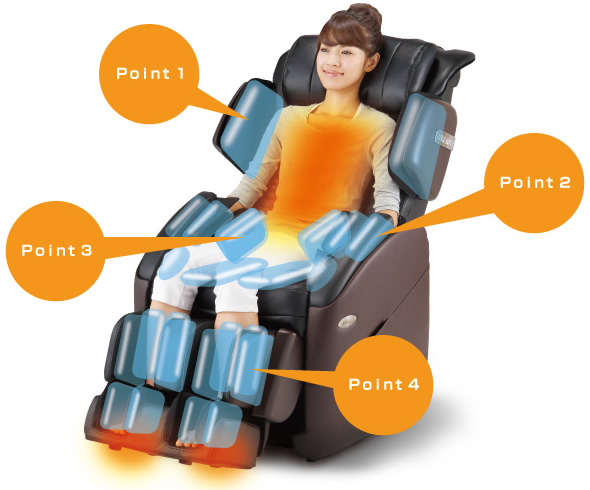 首すじからお尻まで広範囲をカバーする4つのもみ玉を採用。