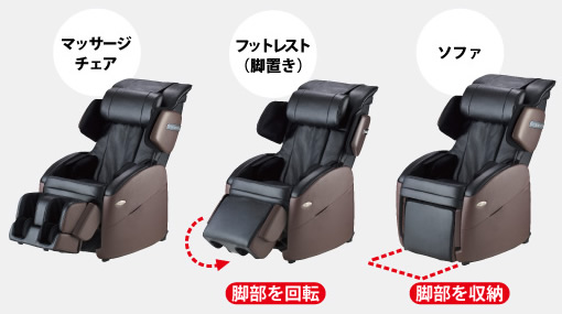 脚部は反転させるとフットレスト(脚置き)に、収納するとソファとしてお使いいただけます。