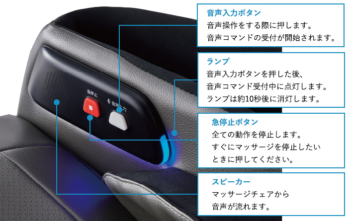 リモコンを使わずに、マッサージの開始から終了までを音声で操作できる「音声操作機能」を搭載。